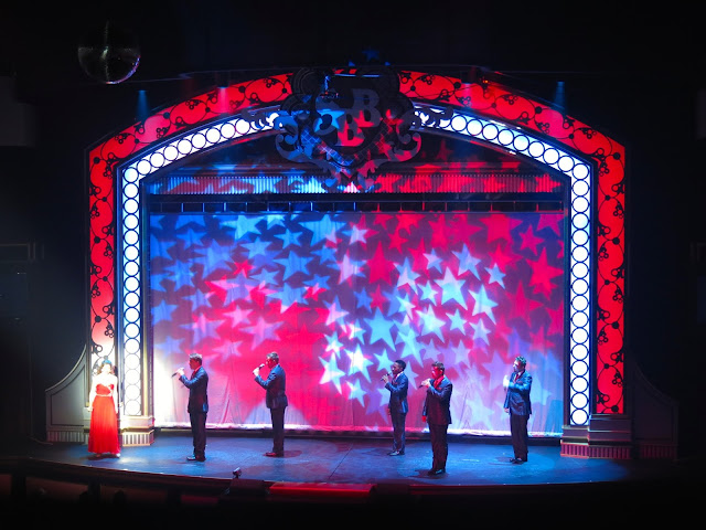 This building is the impressive Sight and Sound Thearter where we saw the fun-filled, adventurous production of Jonah. It had a very large, talented cast of characters and live animals played a big part, too. Donkeys, horses, llamas, wild turkeys, cows, a hairy ox ? and a sheepdog that reminded us of our old dog Cola. Then picture a 50 foot wooden sailboat on stage and a huge whale that floated over the whole audience. It was an epic production that did a great job of sharing the gospel of God's mercy toward mankind.